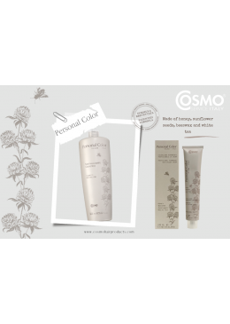 Farba COSMO Personal Color to pernamentna koloryzacja pokrywająca w pełni siwe włosy, o niskiej zawartości amoniaku. Zawiera specjalnie wyselekcjonowane i dopasowane składniki takie jak miód, wosk pszczeli , olej ze słonecznika oraz wyciąg z białej herbaty. Dzięki tak dobranym składnikom, farba Personal Color jest niezwykle bezpieczna dla skóry i włosów, a zawarte w niej barwniki intensywnie kryją i nadają niesamowity efekt kolorystyczny.